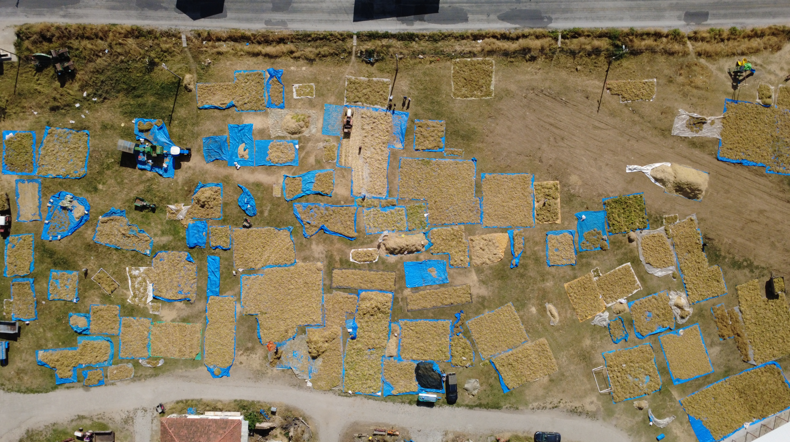 Bardakçı, Mahmutlar, Söğütçük ve Çanakçı başta olmak üzere 18 mahallede tamamen susuz tarımla ve zirai ilaç kullanılmadan üretilen fasulye, tarladan toplandıktan sonra harmana getirilerek bir süre güneşe seriliyor.